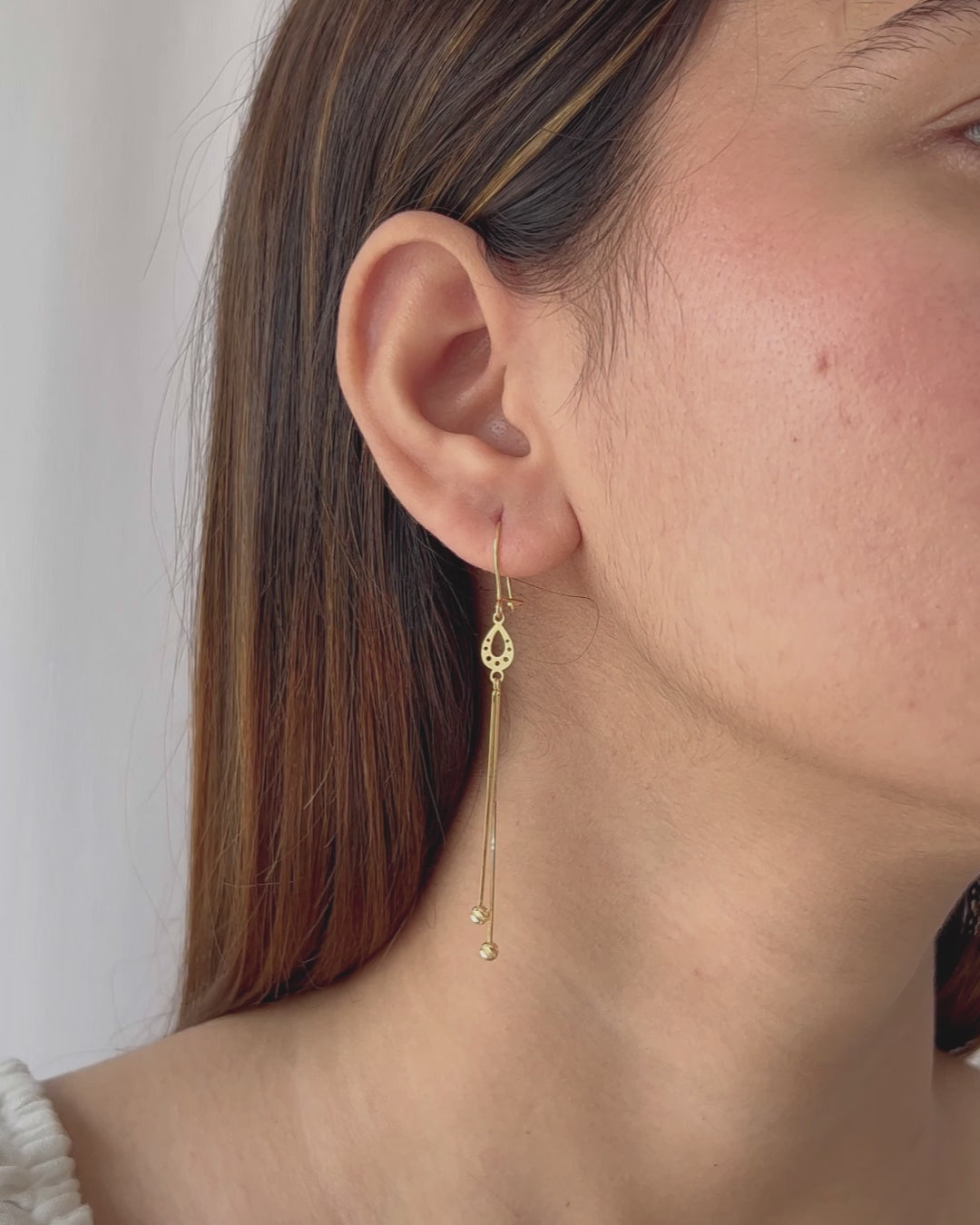 Add a touch of elegance to any outfit with our Ball Drop Earrings. Crafted from 18k gold, these earrings exude sophistication and luxury. Elevate your style with this exclusive accessory that is sure to make a statement. Perfect for any occasion, these earrings will add a touch of refinement to your look.