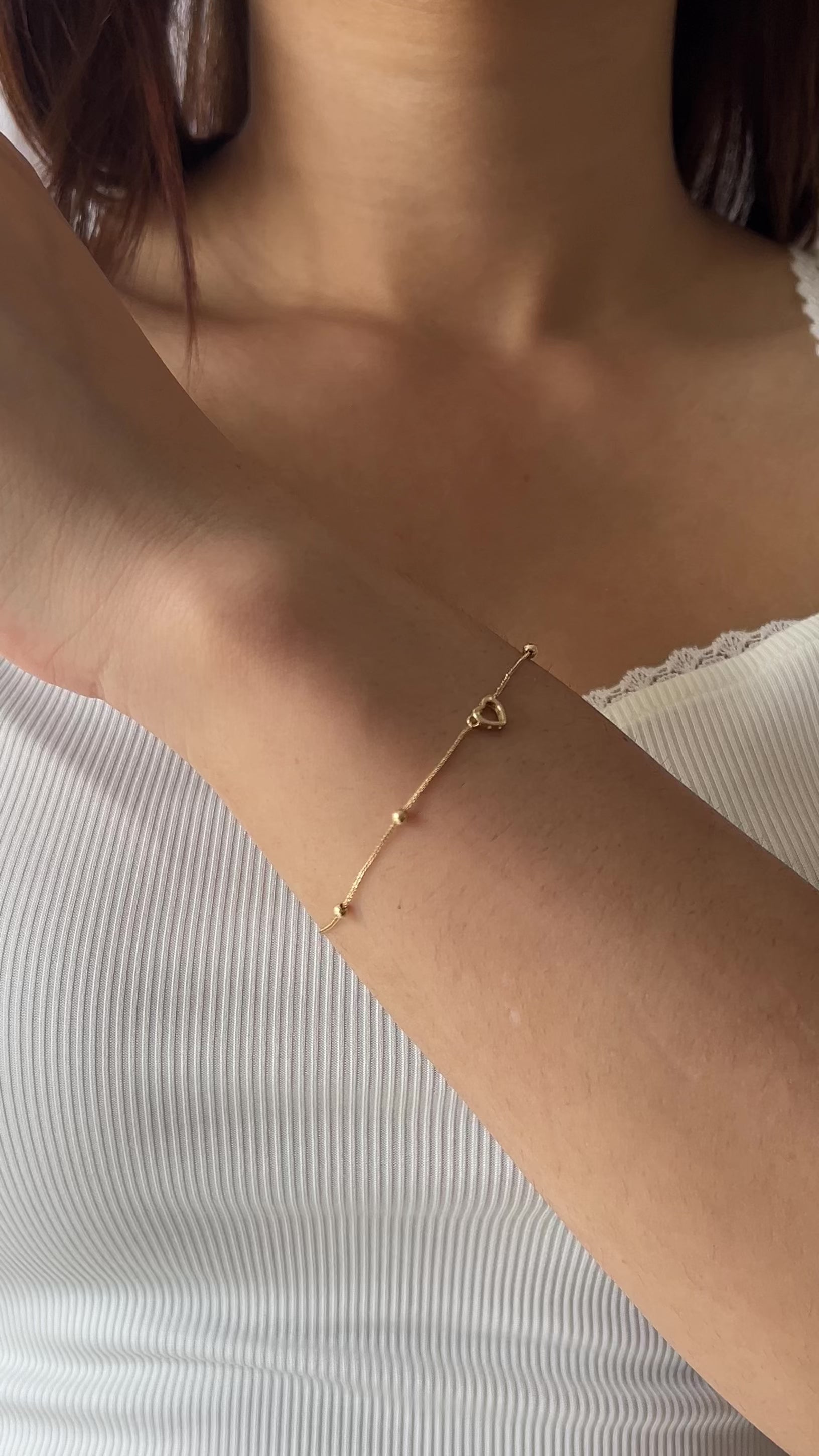 A delicate touch of love. Made in Italy from 18k gold, this bracelet features a heart charm framed with fine bead accents. Light, elegant, and versatile—it’s the perfect everyday piece to wear solo or stacked.
