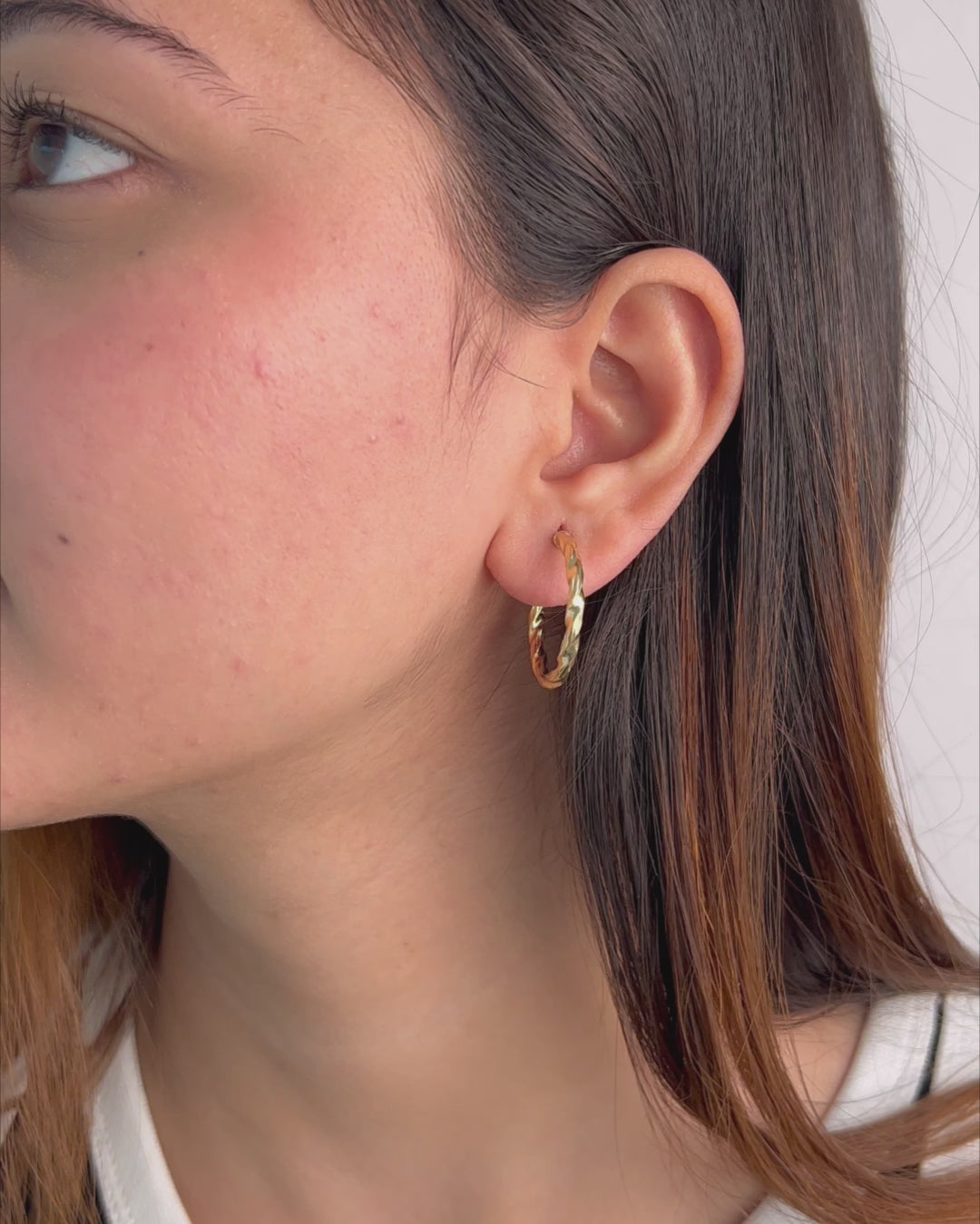 Rock your style with these Bold Twisty Hoops made with 18k gold. Stand out from the crowd with their unique twist design and add a touch of luxury to any outfit. Perfect for any occasion, these hoops are sure to turn heads and make a statement.