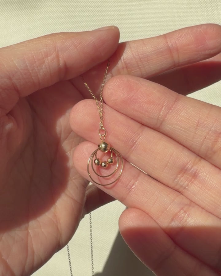 A little universe in gold. Made in Italy from 18k gold, this necklace features orbit-inspired circles that shimmer like stars in motion. Minimal yet striking, it’s the perfect piece to layer or wear solo when you want a touch of cosmic magic. ✨