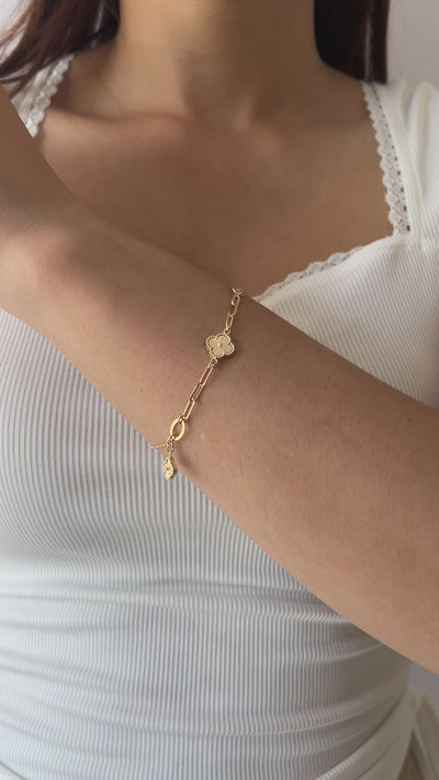 A charm of luck in gold. Made in Italy from 18k gold, this bracelet features a chic paperclip chain adorned with a delicate clover charm. Modern yet timeless, it’s perfect for everyday wear or as a lucky layering piece.