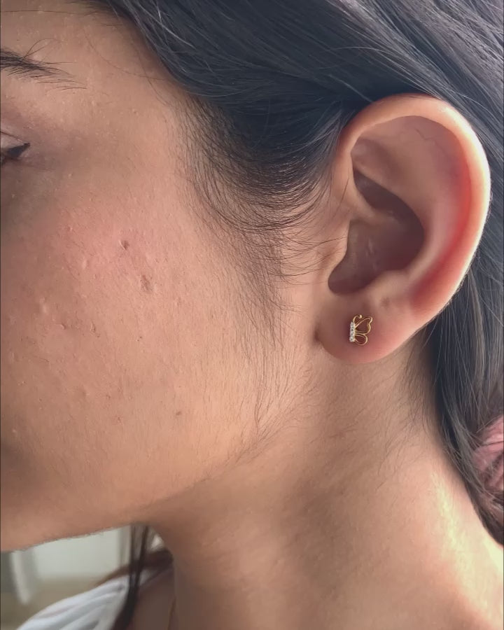 This charming pair of Half Butterfly Studs is absolutely adorable and incredibly feminine with its subtle gold and brilliant diamond charm.