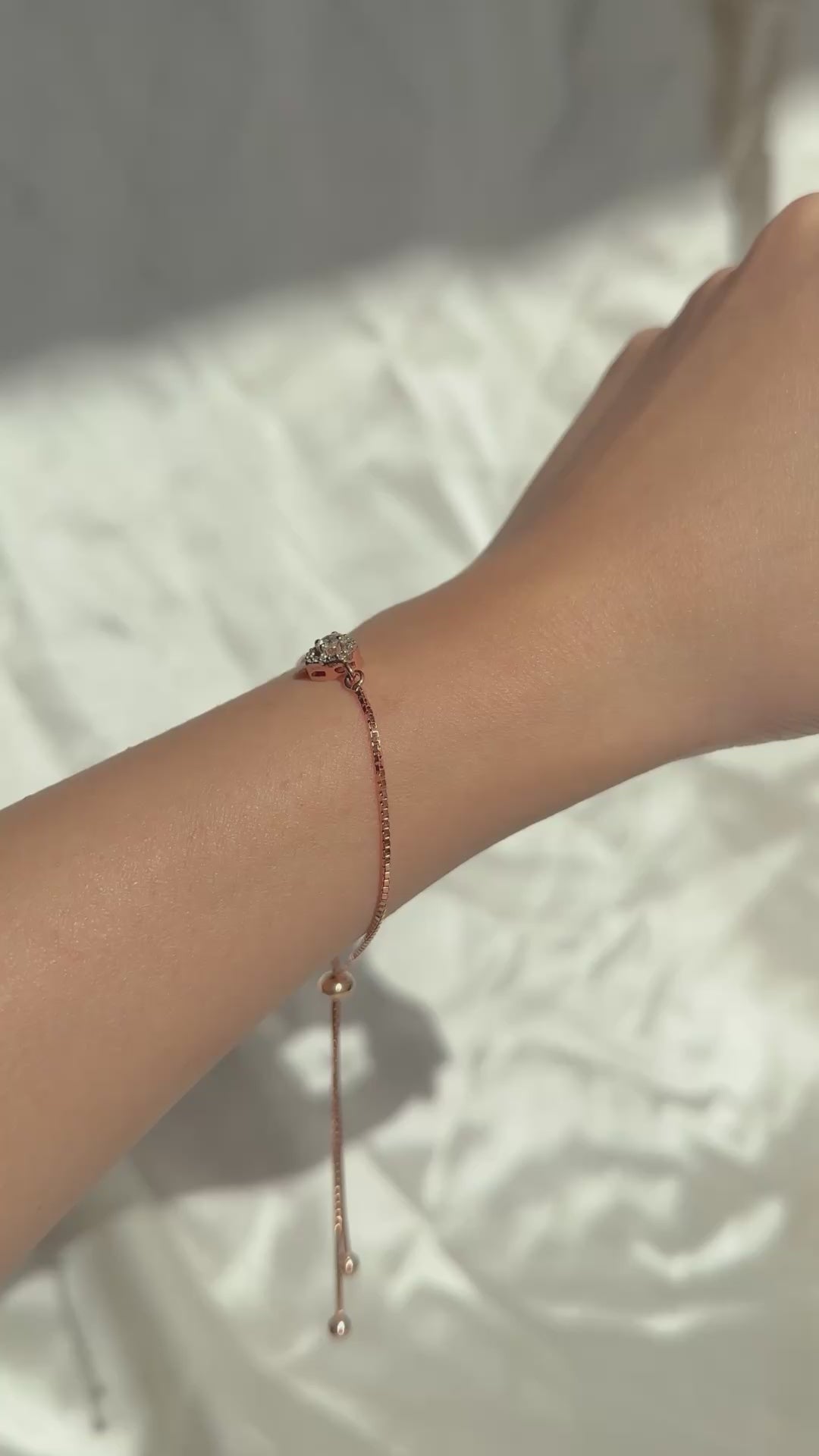 Be fashionable and luxurious with the Halo Heart Bracelet. Crafted from 18 K rose gold, this bracelet features a brilliant 0.1 ct diamond center surrounded by a halo of diamonds in a heart-shaped design. Perfect for adding a subtle yet sophisticated sparkle to any look.