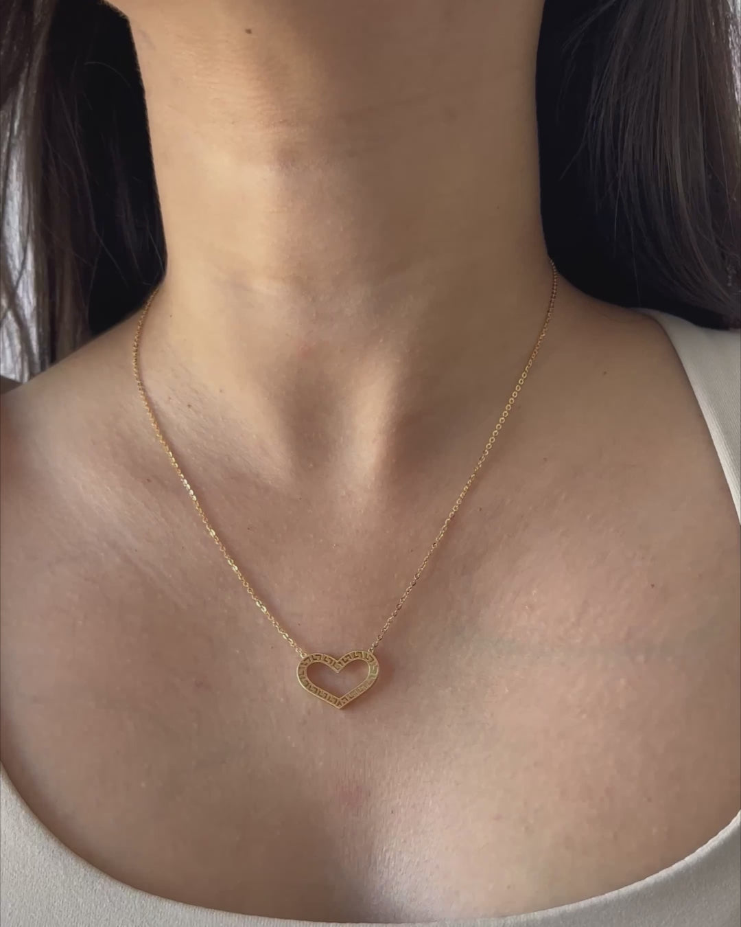 Indulge in luxury with our Meander Heart Necklace. Crafted from 18k gold, this elegant piece features a striking meander symbol, representing eternal love and continuous growth. Elevate any outfit with this exclusive and tasteful necklace.