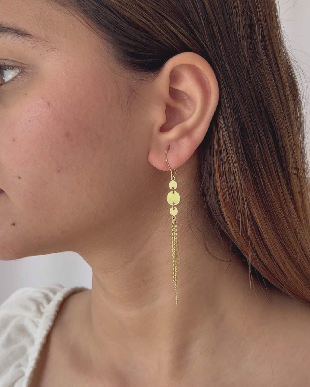 Indulge in luxury with our Multi Circle Drop Earrings, crafted with 18k gold. These elegant earrings feature multiple circles dropping down, adding an artistic touch to your ensemble.