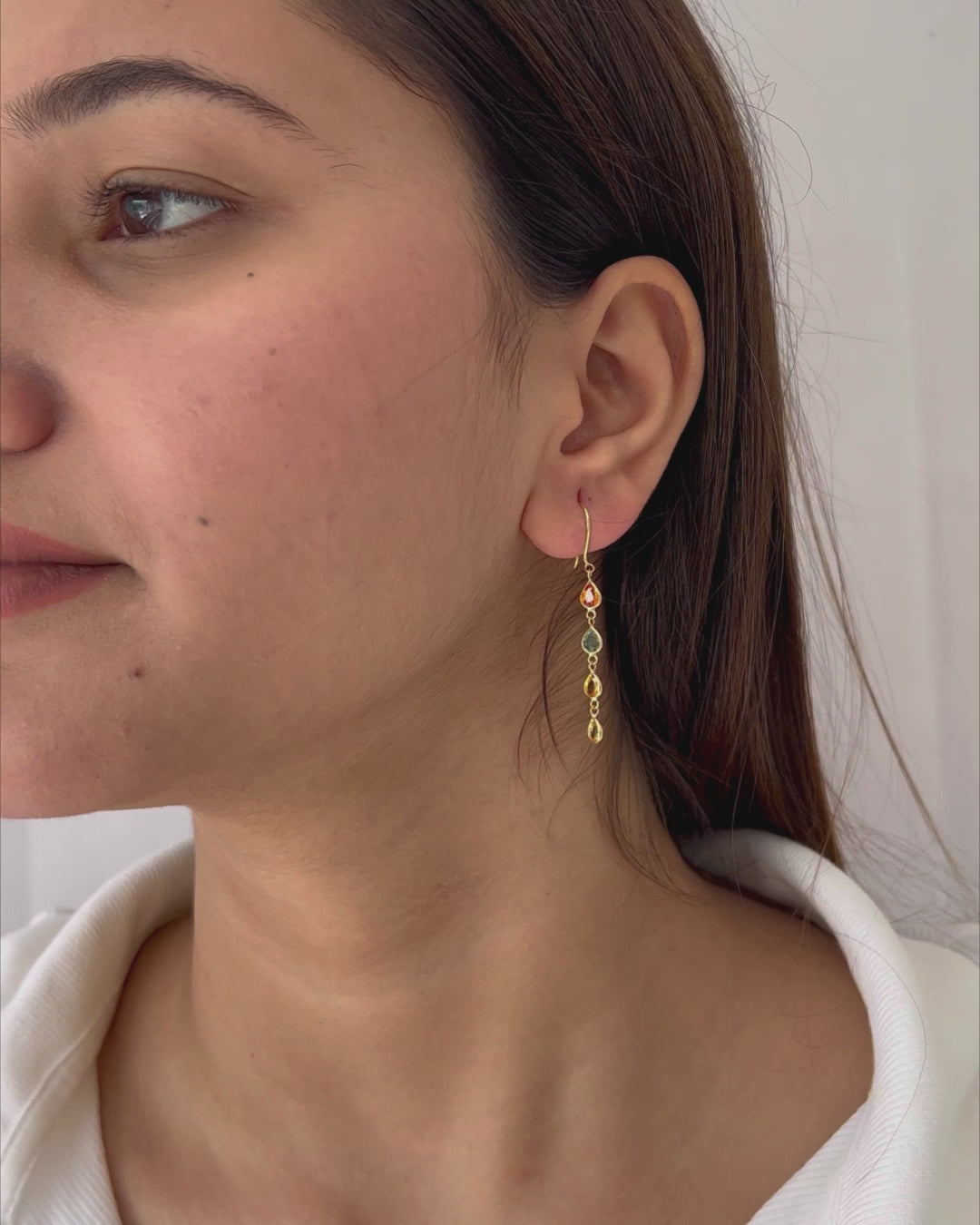 Transform into a vision of royalty with our Multi Sapphire Dangler Earrings. Crafted with exquisite 18k gold, these earrings boast a stunning display of multi-colored sapphires that will elevate any outfit. Bring a touch of opulence to your look with these beguiling and elegant earrings.