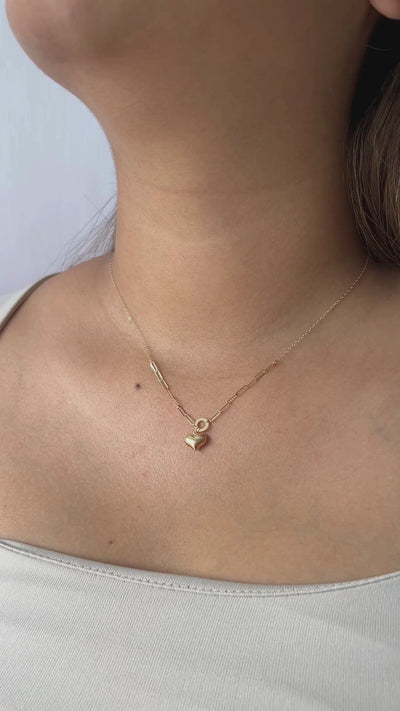 Romance meets edge. Made in Italy from 18k gold, this necklace features a polished heart charm framed by a bold paperclip chain. Minimal yet statement-making, it’s the perfect mix of soft and strong—designed to layer or stand alone.